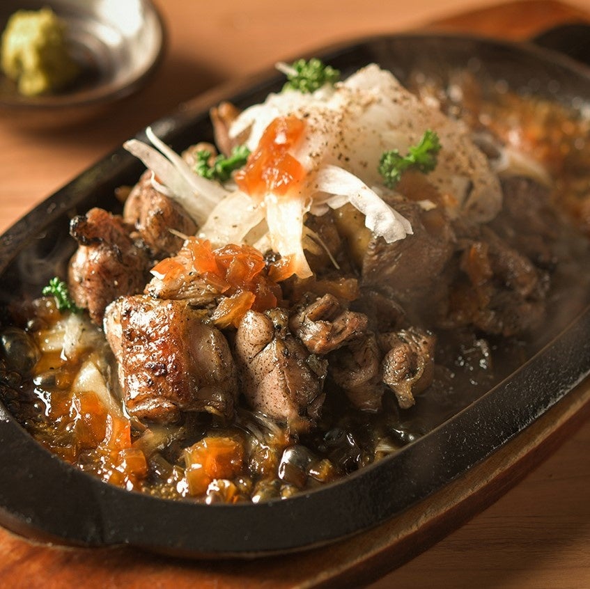 塚田農場の看板商品「地鶏の炭火焼」に宮崎県産の新玉葱のスライスをたっぷりと合わせ、少し酸味のあるシャリアピンソースで召し上がっていただく、春にだけお目見えする玉葱尽くしの炭火焼です。