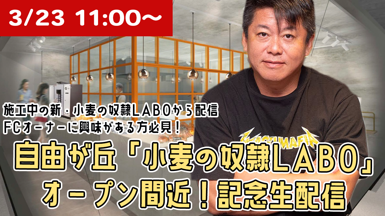 - 4月オープン予定の「小麦の奴隷LABO 自由が丘」にて、ホリエモンが出店サポートシステムや経営指針を語ります!