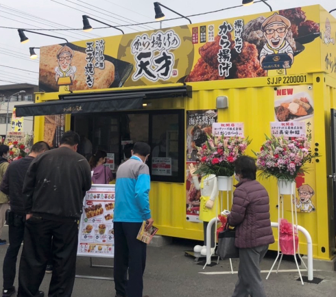「から揚げの天才」の特徴として、商品力とコロナ禍でも出店しやすいフランチャイズ(FC)モデルであることがあげられます。FCモデルとしては10坪程度の小規模な物件でも出店でき、商品もから揚げと玉子焼きに絞り込んだFCフォーマットを確立しました。そして、より出店しやすいフォーマットの「380万円出店モデル」コンテナタイプの出店を増やしていくことで、より多くの方の起業や事業拡大のための支援に取り組んでまいります。