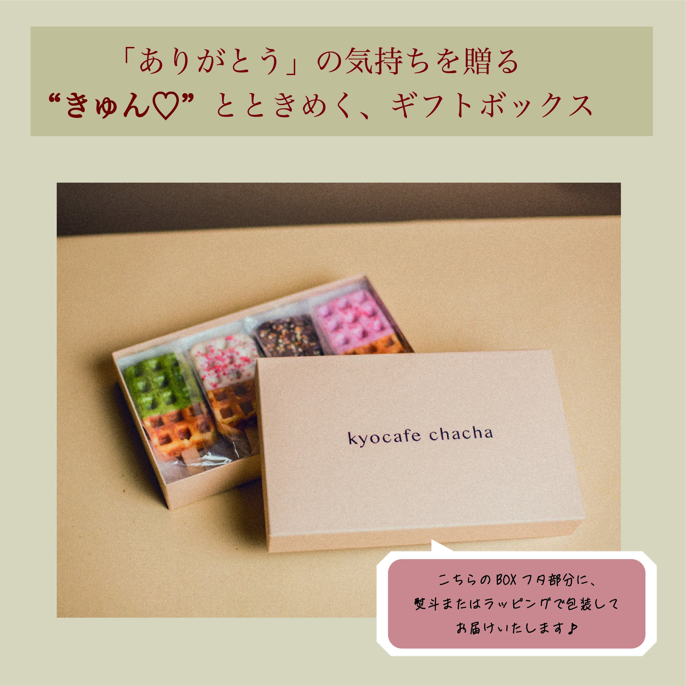 kyocafe chachaはご指定の宛先まで、あなたの気持ちと一緒に”美味しい&かわいい”京ワッフルをお届けします。