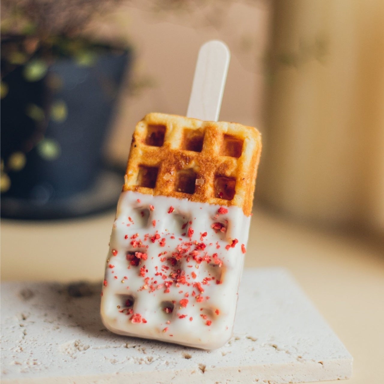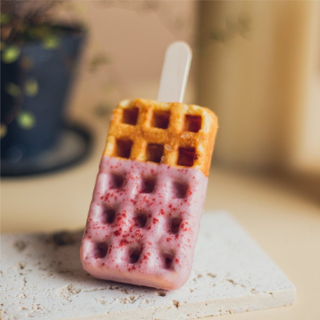 ワッフルにスティックが刺さっているので、食事中でも手が汚れることがありません♪
