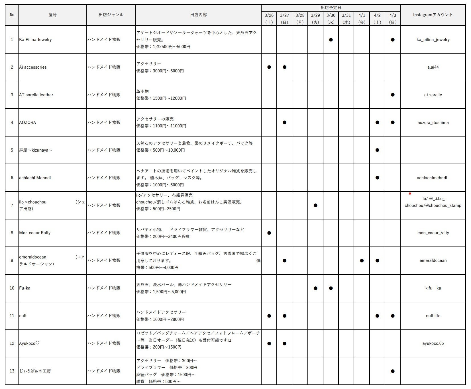 - 【占い・癒し・ワークショップ出店予定一覧】