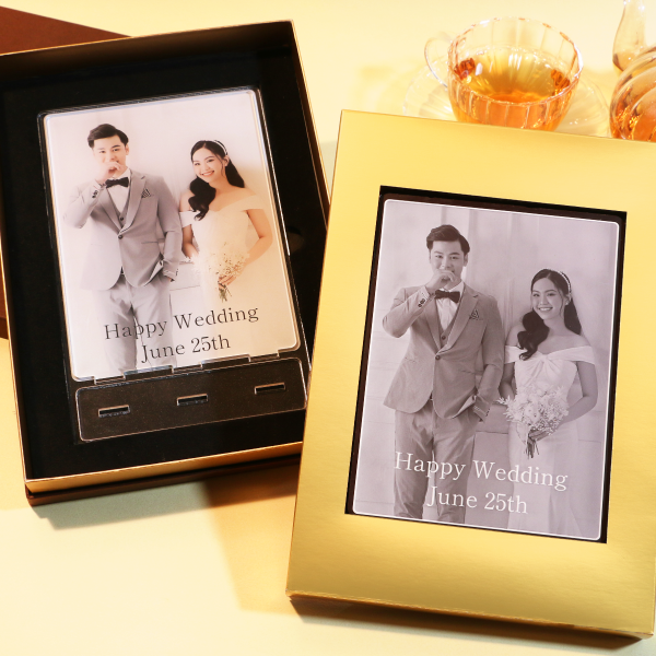 また、「ショコラ アート」が(もったいなくて)食べられないということにならないよう、「アクリルフォト」をセットにしていますので、思い出として残すことができます。