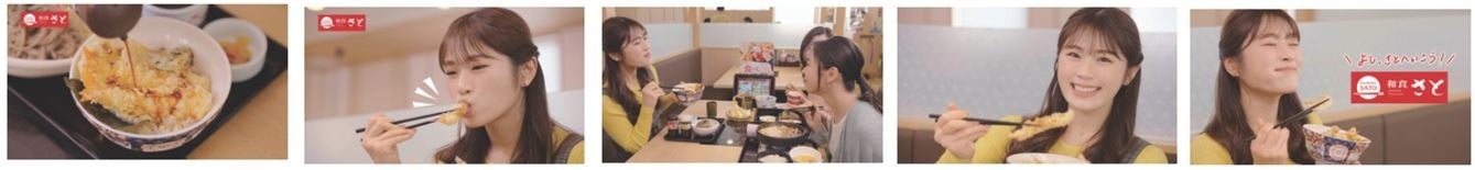 今回のTVCMでは、和食さとがおすすめする3つのメニュー「食べ放題」「天丼」「デザート&カフェ」の魅力を、アンバサダーの「渋谷凪咲」さん独自の目線や言葉で紹介しています。