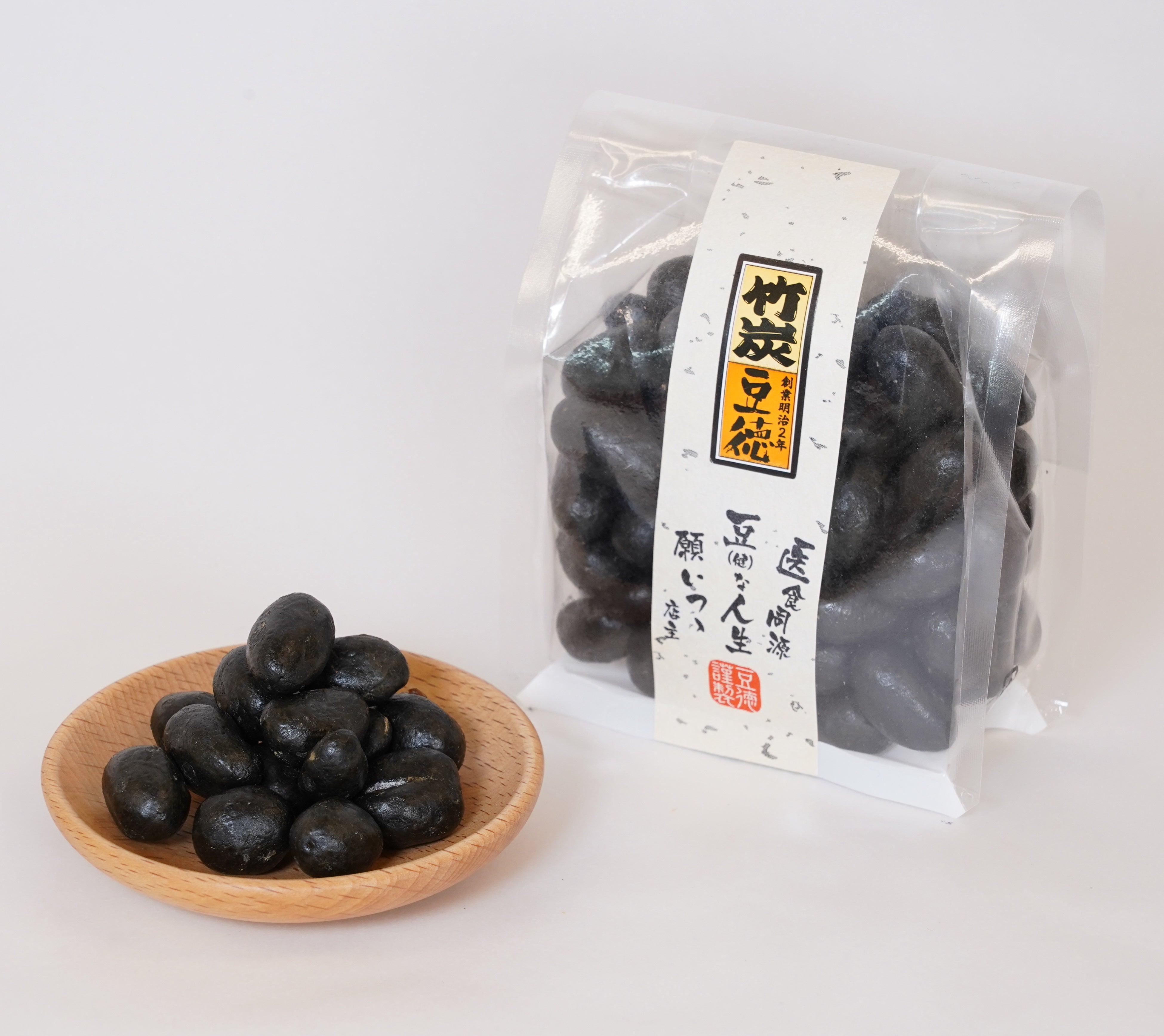 また、看板商品としては「竹炭豆」があります。落花生に竹炭の粉末を巻き込んだ商品で、お菓子に最初に炭を使ったものとして2002年に開発、その独自の技術で製法特許も取得しています。当時、お菓子に炭を使うという発想はなく、ましてや「黒いお菓子」などタブーとされている中、異例のヒット商品となり、豆菓子の世界に新風を起こしました。