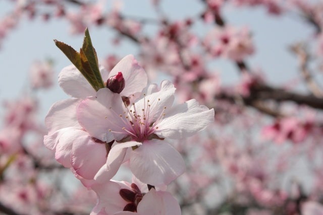 アーモンドは世界的に流通しているナッツですが、その花を知らない方は多いかもしれません。実はアーモンドの花は桜と同じバラ科のサクラ属の落葉高木で、アメリカカリフォルニア州では2月上旬~3月中旬ごろに開花します。アーモンドは桜によく似たピンク色の可憐な花を咲かせます。日本ではあまり馴染みのないアーモンドの花ですが、満開になると桜に引けを取らないくらいの美しさです。私たちはアーモンドを桜と同じく春の訪れを告げる花として広めていきます。