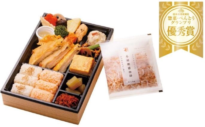 株式会社にんべん(東京都中央区、代表取締役社長 髙津伊兵衛)は、株式会社日本食糧新聞社(東京都中央区、代表取締役社長 杉田尚)主催の「惣菜・べんとうグランプリ 2022」へ「日本橋だし場」ブランドの惣菜・弁当をエントリーし、「かつおづくし弁当」が「わが社自慢の惣菜・べんとう部門」(応募総数 603 点)において優秀賞を受賞しました。