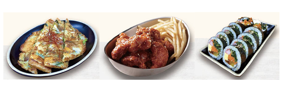 ジャガイモとチーズのチヂミ&ヤンニョムチキン&ナムルキンパ セット
