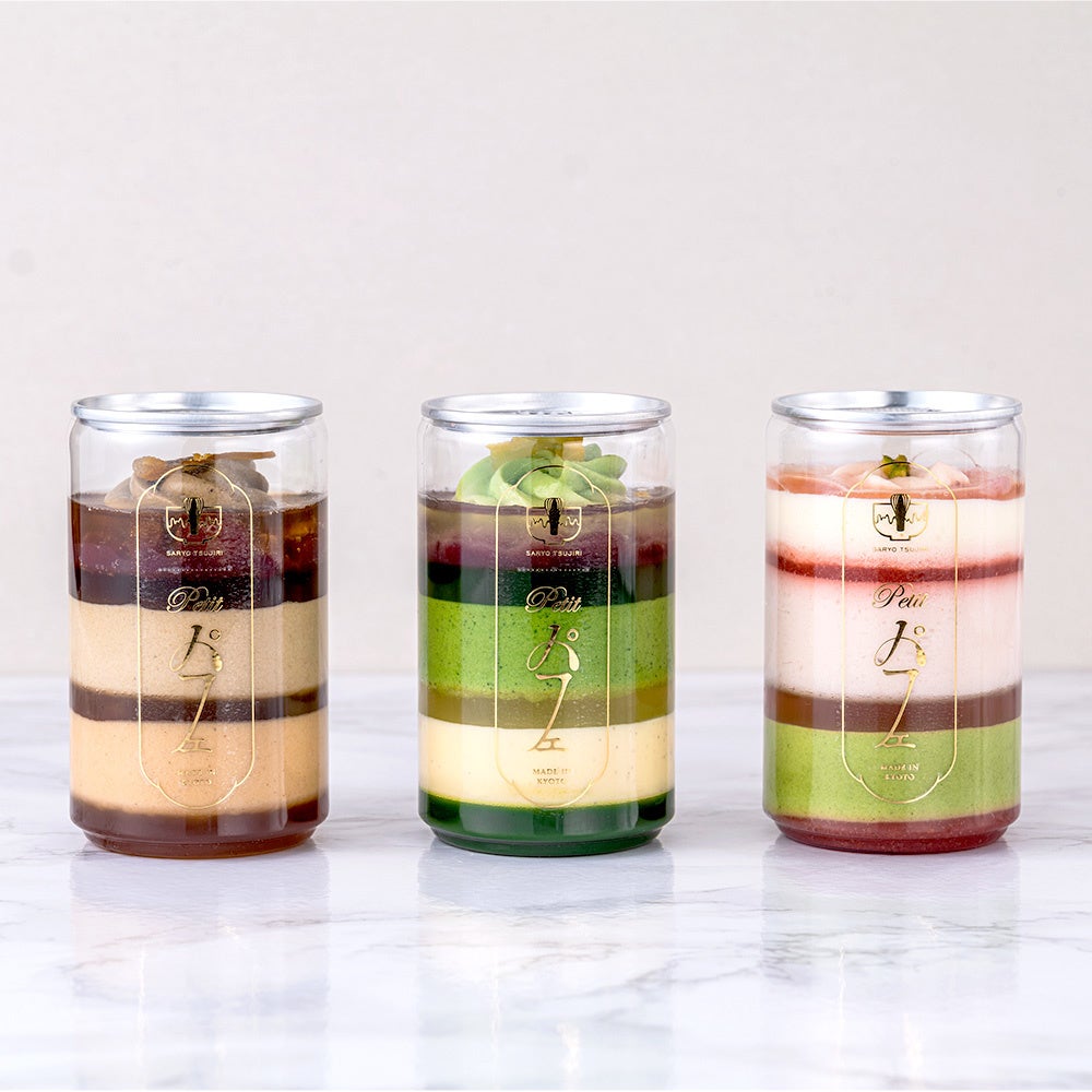 “petit(プティ)”とはフランス語で「小さな」「かわいい」という意味で、“parfait(パフェ)”は語源は「完璧な」。その名の通り、茶寮都路里が「完璧なスイーツ」を目指して作った、新しいパフェです。一層ずつ丁寧に手作りした、お茶の風味と調和する素材たち。食べ進めるたびに楽しめる味のハーモニーは、茶寮都路里でしか味わうことのできない一品。パフェをご自宅でご堪能いただくために誕生した、 新しい茶寮都路里スイーツです。