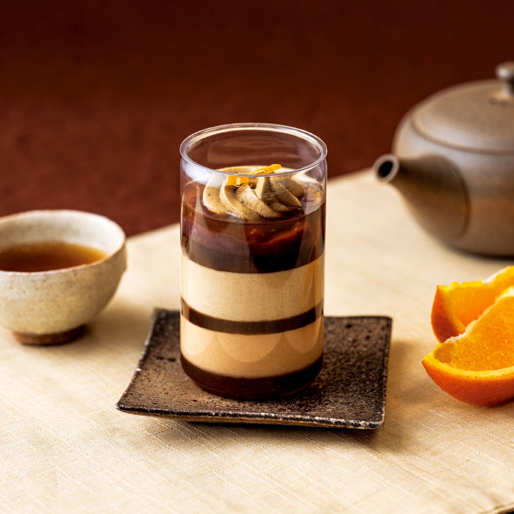 進化系ほうじ茶スイーツ「Petitパフェほうじ茶」 。 祇園辻利独自の製法による芳醇で香り高いほうじ茶と、オレンジピールの苦みの調和によって広がる世界は、まさに 新感覚。またスプーンをすすめる先には、深めに炒ることで香り高い「京碾ききなこ」をあしらいました。 きなこ独特の香ばしさと仄かな甘味、繊細なほうじ茶のコクを心ゆくまで感じる上品な一品は、眺めても、食べてもしあわせな一時をお届けします。