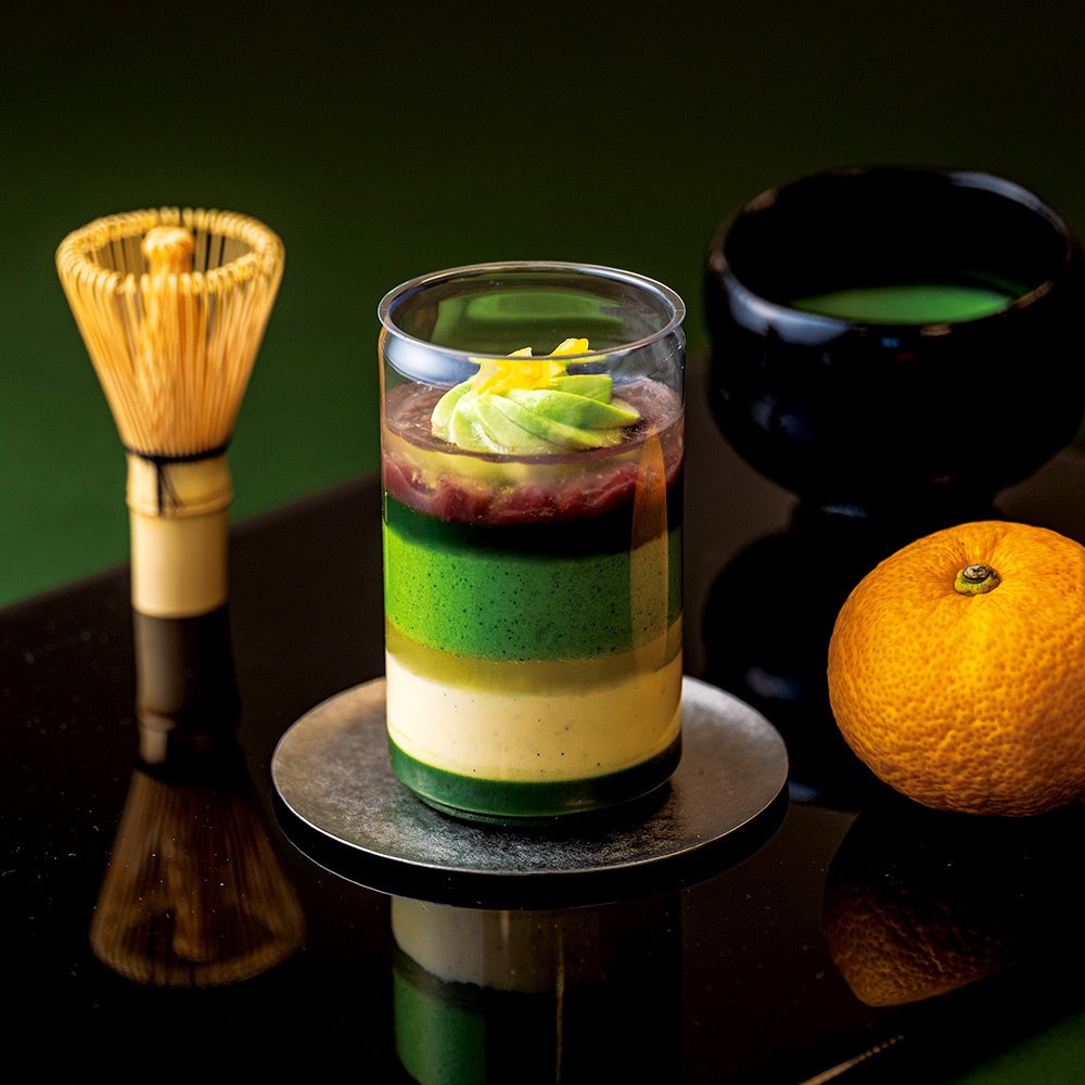 層の数だけ、抹茶の味わいに変化が訪れる魅惑のスイーツ「Petitパフェ抹茶」。 京都水尾の実生栽培柚子で仕上げたゼリーと、茶寮都路里のホイップ、小豆が重なり合い生まれる和洋の垣根を超えた爽やかな甘味をお楽しみいただけます。そして、祇園辻利厳選抹茶を使用した濃厚抹茶ジュレと相性の良いミルキーなムースによって、最後まで香り引き立つスイートな仕上がりに。
