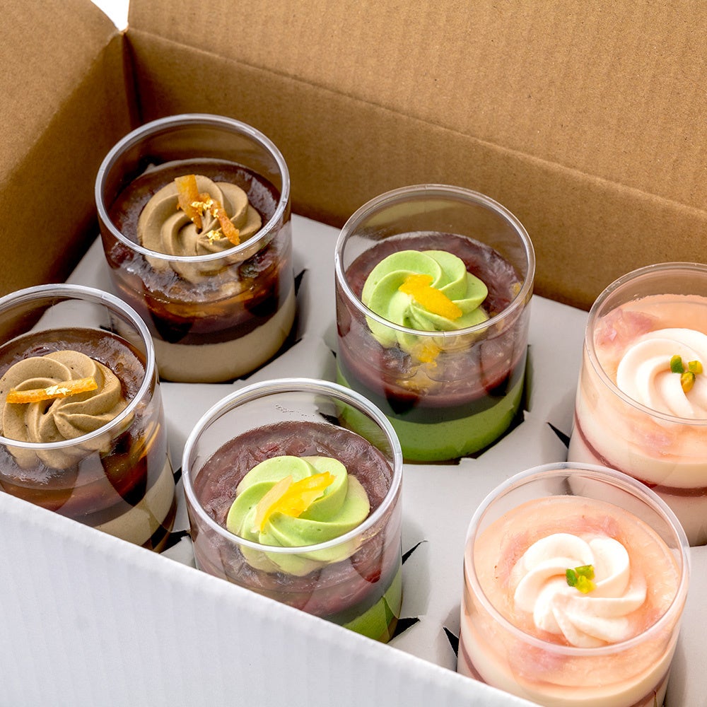 期間限定「Petitパフェ抹茶 ほうじ茶 花咲セット」 6個入り/ 7,128円 (税込・送料込 ※クール便)