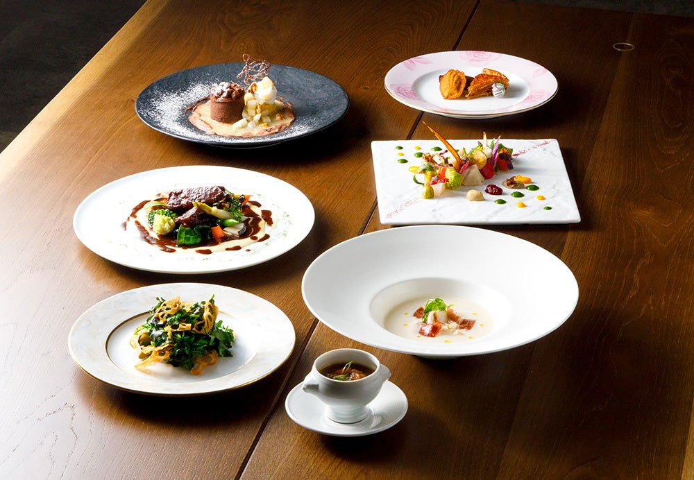 季節によって移ろいゆく苔庭を眺めながら、シェフ芝 宝洋(しば たかひろ)の地元食材を使ったこだわりレストランメニューとシェフパティシエ金井幹雄(かない みきお)が生み出す美しいデセールメニューをお召し上がりいただけます。