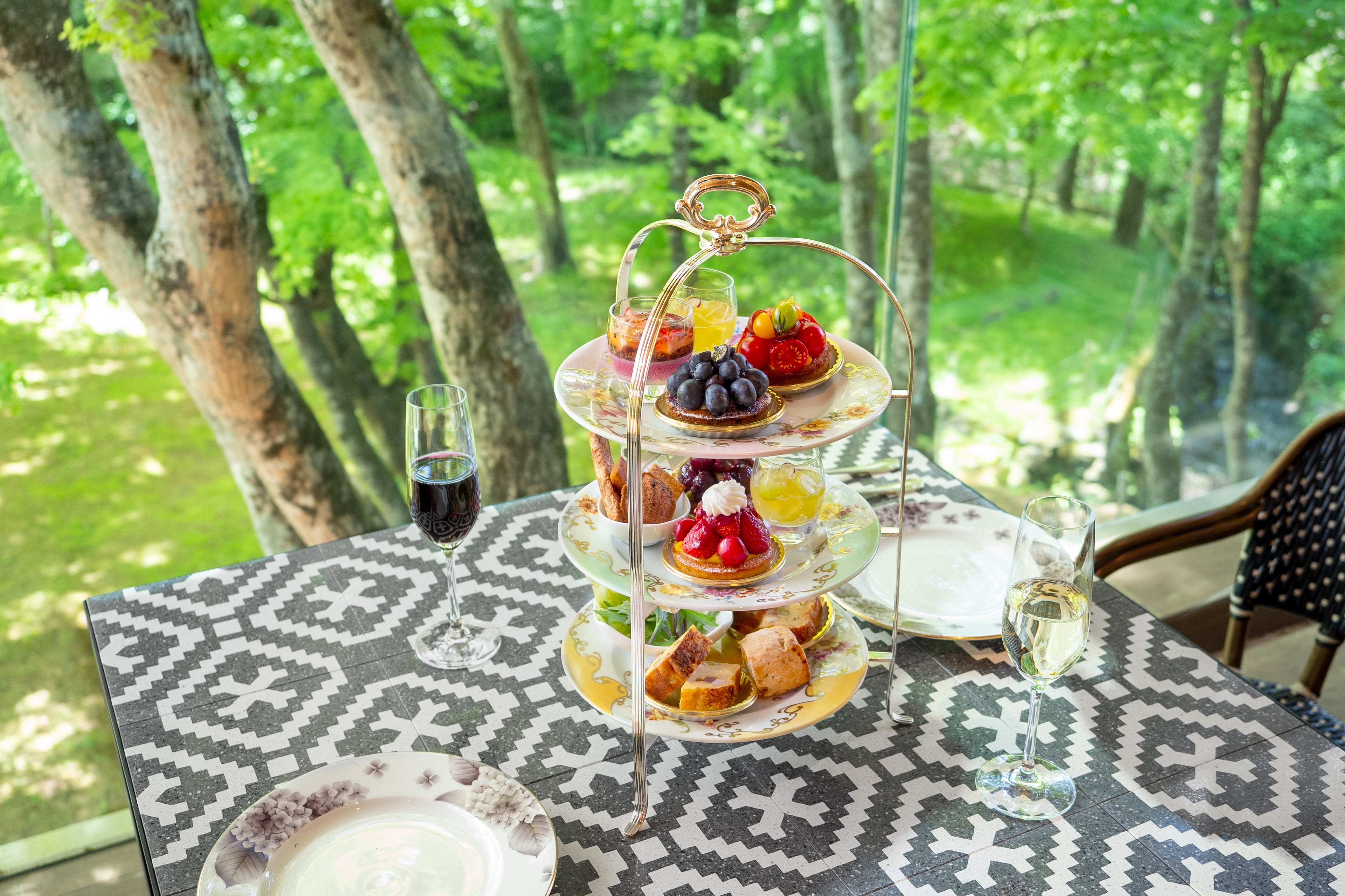 シェフパティシエ金井幹雄が繊細な技術でひとつひとつ丹精込めておつくりするスイーツの世界。軽井沢でしか味わえない“できたて”ならではのおいしさを、木々の木漏れ日の中で味わっていただきたい。旬のフルーツを味わう「季節のデザートセット」や3層に重なる「季節のアフタヌーンティーセット」を、森の心地よい空気とともにお召し上がりください。