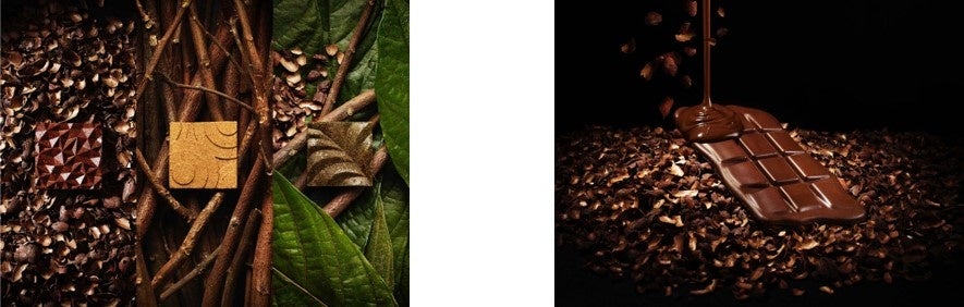 チョコレートの主原料となるカカオマスは、カカオポッドの中から採取されるカカオ豆から作られ、残りの約70% のカカオ素材は廃棄されています。そのカカオ廃材に着目し、一般的にチョコレート製造で用いられるカカオマスやココアバターを使用せず 、廃棄されるカカオ豆の殻、枝、葉から生まれた新しいチョコレート「ECOLATE」を開発しました。