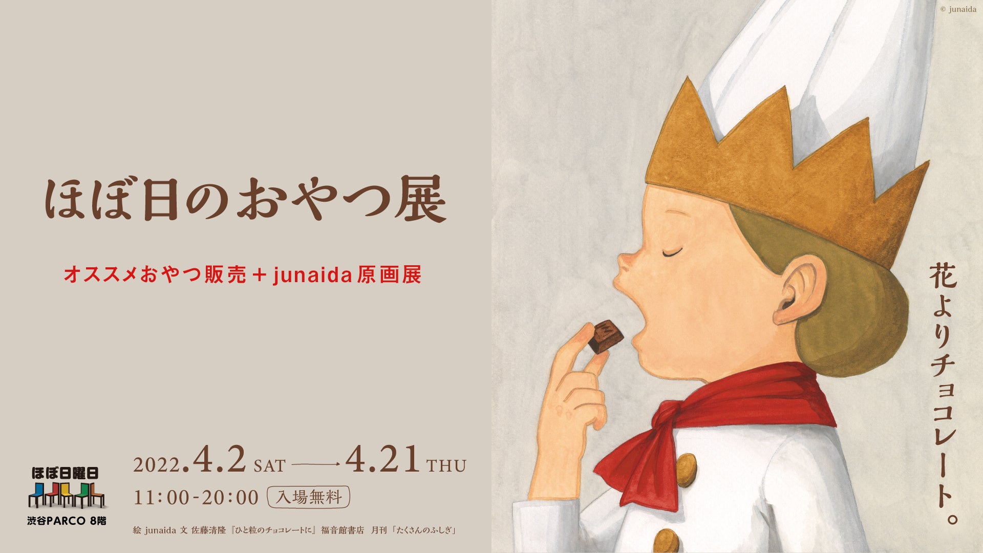 株式会社ほぼ日が渋谷PARCO8Fで運営する「ほぼ日曜日」で、2021年に続いて、二度目の「ほぼ日のおやつ展」を開催します。今回のテーマは「チョコレート」。バレンタインデーが過ぎ、ホワイトデーも過ぎ、その次にやってくるお花見の季節に「花よりチョコレート」な気持ちでみなさまをお迎えします。ほぼ日が自信をもっておすすめするおいしいチョコレートのおやつが、10のショップから集まります。