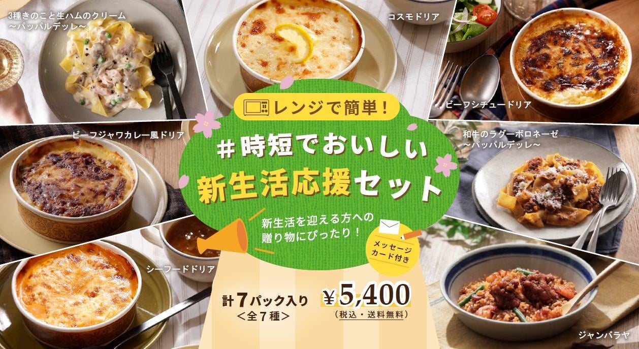「クラシック洋食」、「美食の国イタリア」、「アメリカ郷土料理」のカテゴリの中から、電子レンジで温めるだけで作りたてのような美味しさを味わえる商品7種を詰め合わせにした特別セットを販売。また、新生活を迎える人への贈り物として、応援メッセージが添えられるオリジナルメッセージカードのサービスも導入いたします。