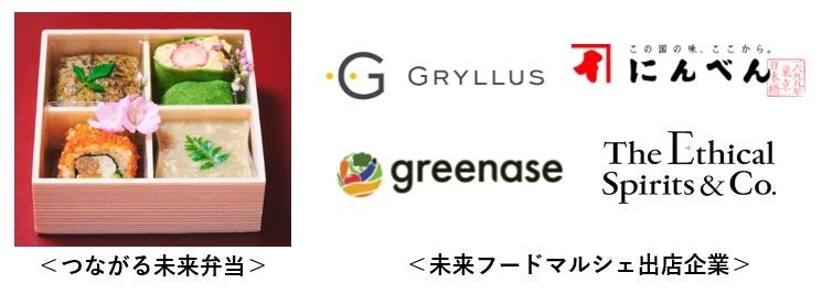 地球への負荷を減らすサステナブルな次世代食材を活用し、日本橋の名店がメニューを考案したお弁当を販売するつながる未来弁当や、未来の食が身近に感じられる未来フードマルシェ、トークセッションなど様々なコンテンツもお届けします。
