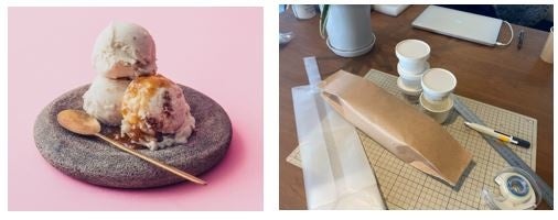 ミコト屋から持ち込まれる「アイスを料理としてとらえる」アイデアに驚き、共鳴しながら鰹だしの新しい可能性をチームで研究してきました。たとえば山椒と生姜鰹を使ったフレーバーは、一口で順番にいろいろな味が楽しめる「料理のコースを食べているような」アイスに仕上がっています。
