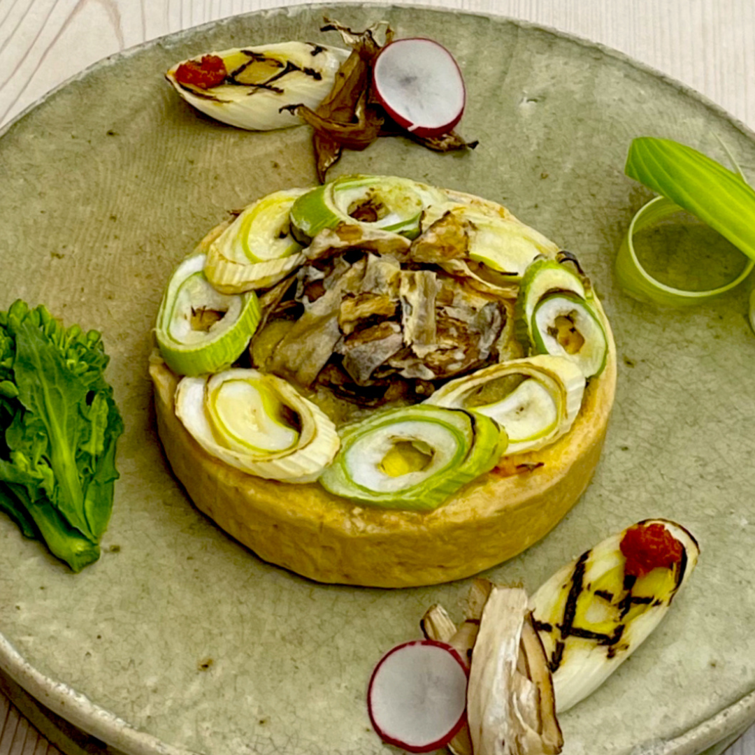 - 播州百日どりと長ネギの自家製柚子胡椒香るキッシュ
