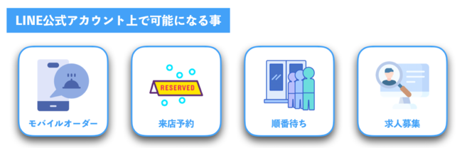 Lテイクアウト&オーダーを導入すると、店舗のLINE公式アカウント上で4つの機能を自由に利用することができます。