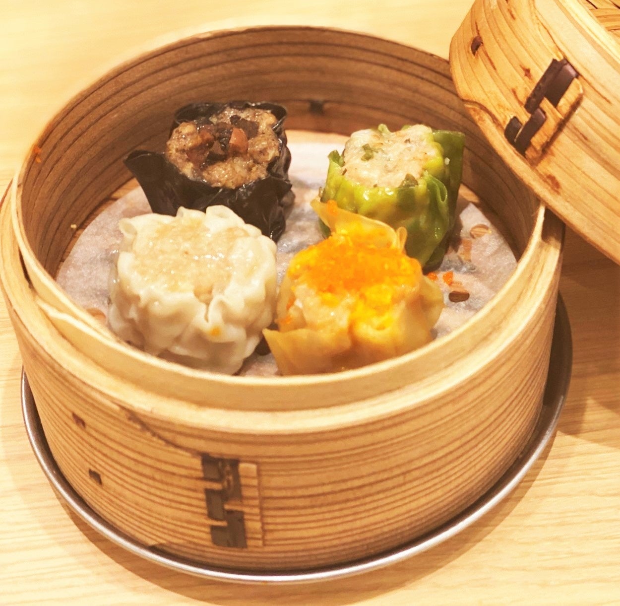 海老と帆立をふんだんに使ったプリプリでジューシーな王道の海鮮焼売。とびっこを散らして見た目も華やかです。写真:右上