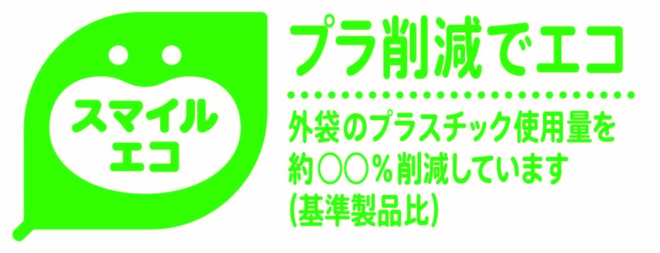 こうした容器包装を通じての環境配慮への取り組みを、お客様に分かりやすくお伝えするために、 本年より弊社の環境配慮基準をクリアした製品に「スマイルエコマーク」を順次表示⁑いたします。また、本基準をクリアした製品で22年度は108.3トン*のプラスチック使用量を削減見込みです。