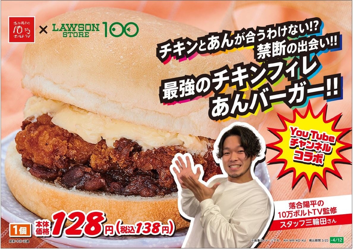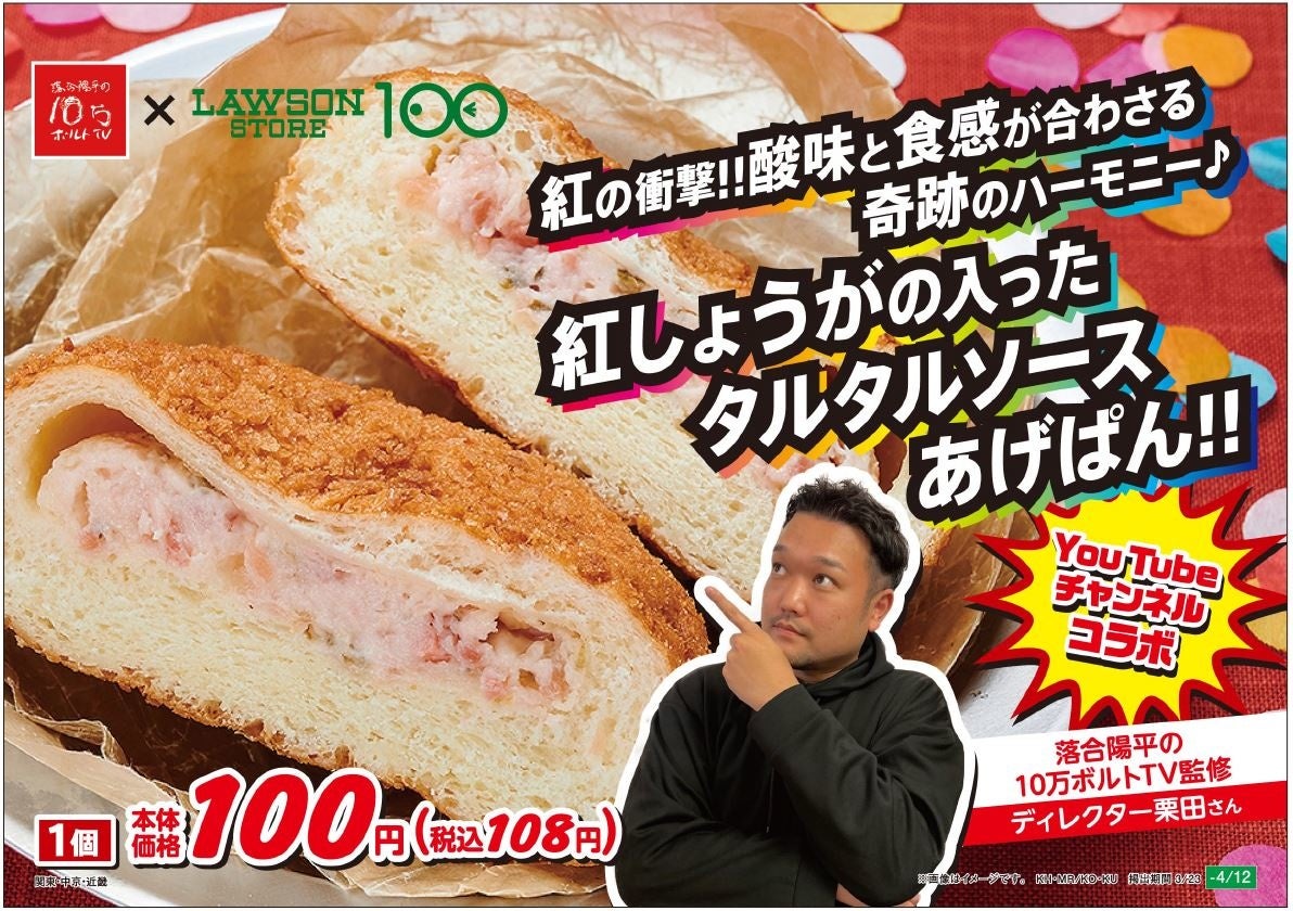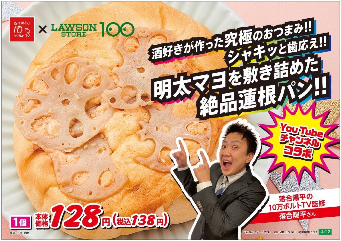 株式会社ローソンストア100(神奈川県川崎市)が運営する「ローソンストア100」(669店舗/2022年2月現在)では、人気YouTubeチャンネル「落合陽平の10万ボルトTV」とコラボレーションして開発したオリジナルパンの3品を、3月23日(水)より4月12日(火)までの期間限定で、全国のローソンストア100で販売開始します。