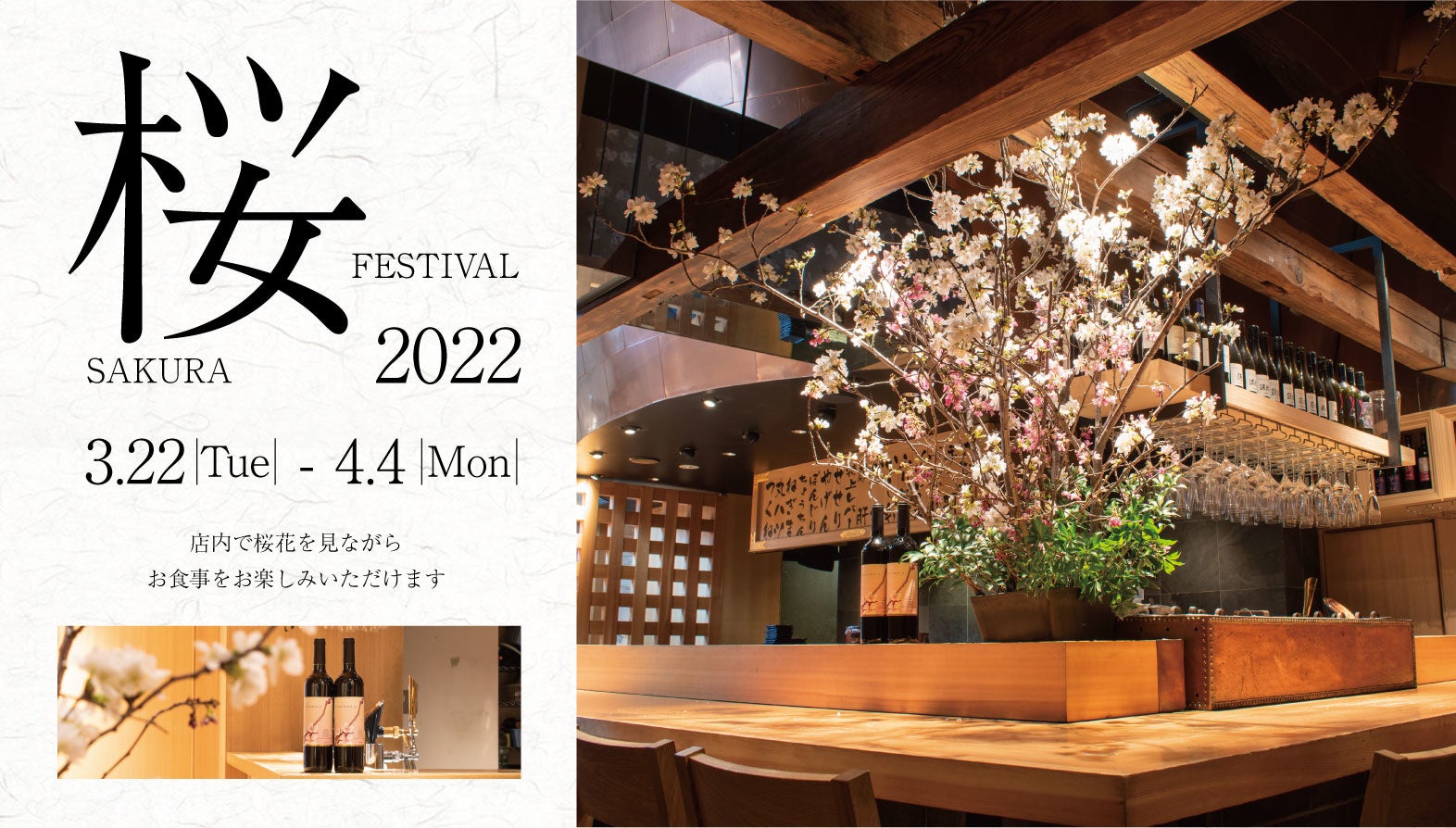 外でお花見もいいけれど、「混雑はコロナが気になるし…。」「花粉症で毎年お花見はできない。」「春といってもまだ肌寒くて長くは居れない」と感じる方は実は多くいます。そんな方でも店内で満開に咲き誇る桜と春の旬食材を使用した美食を堪能できる企画をご用意いたしました。今年で 3 年目を迎える桜イベントは、毎年多くのお客様よりご好評いただいております。