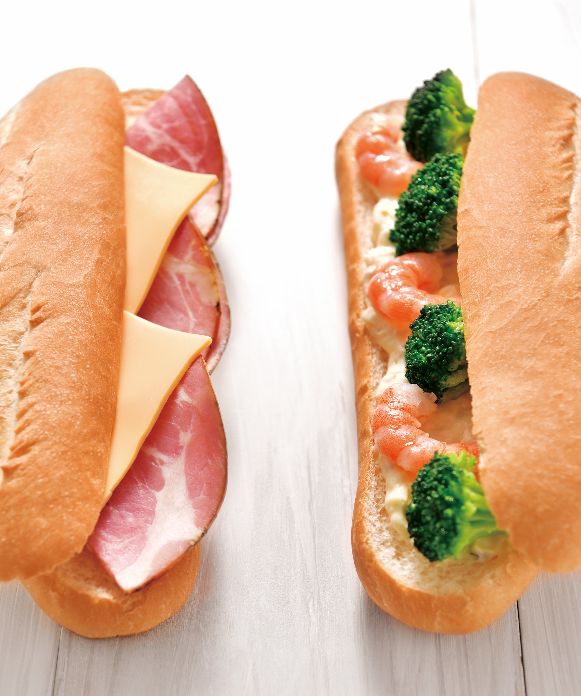 「カスクートサンド 海老タルタル」は、海老とブロッコリーの食感が楽しい食べ応えのあるサンドです。たまごのコクとピクルスの酸味が特徴のタルタルソースをあわせました。焼きたてのパンの香ばしい香りと、タルタルソースに使用している爽やかなハーブの香りが食欲をそそります。
