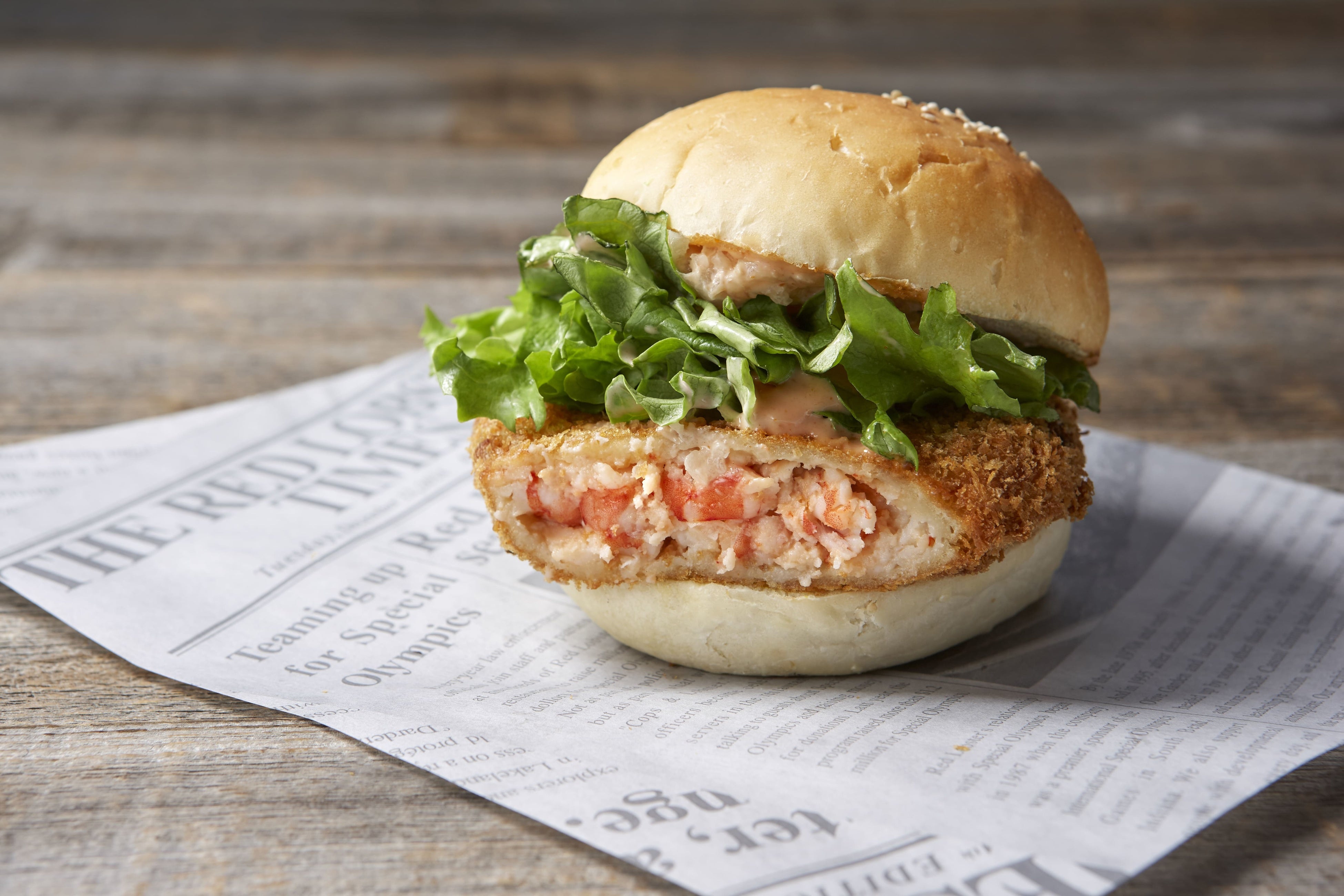 「海老バーガーの王様」。高級な車海老を使って原価も価格も