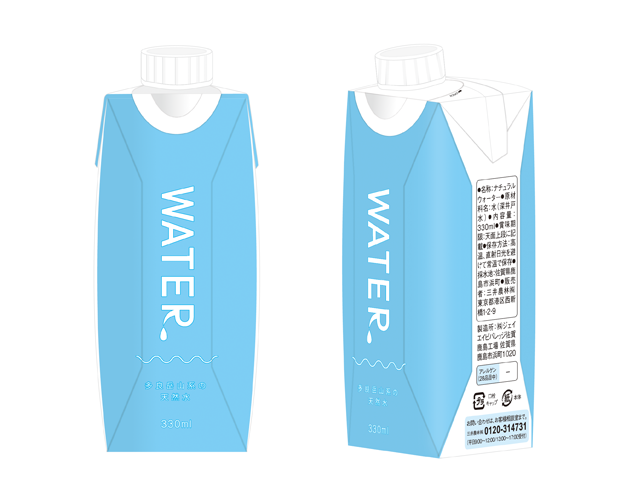 小型の紙容器に入った国産ナチュラルウォーター。多良岳山系の天然水を使用しております。