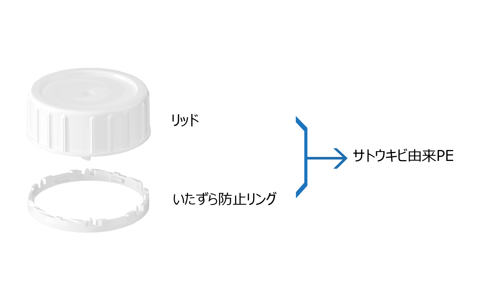 ※植物由来素材(サトウキビ由来)のキャップの変更箇所は下記画像(リッド、いたずら防止リング)になります。