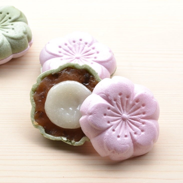 桜の花びらをかたどった最中に、風味豊かな桜あんと柔らかな求肥餅を挟んだ春限定の和菓子です。