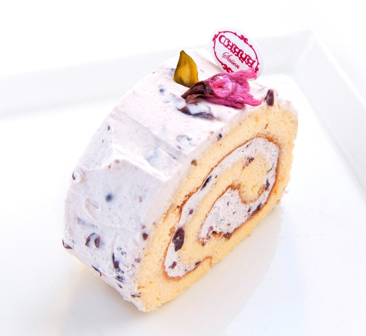 優しい甘さの桜餡クリームにアクセントとして桜の塩漬けを添えた、春限定のロールケーキです