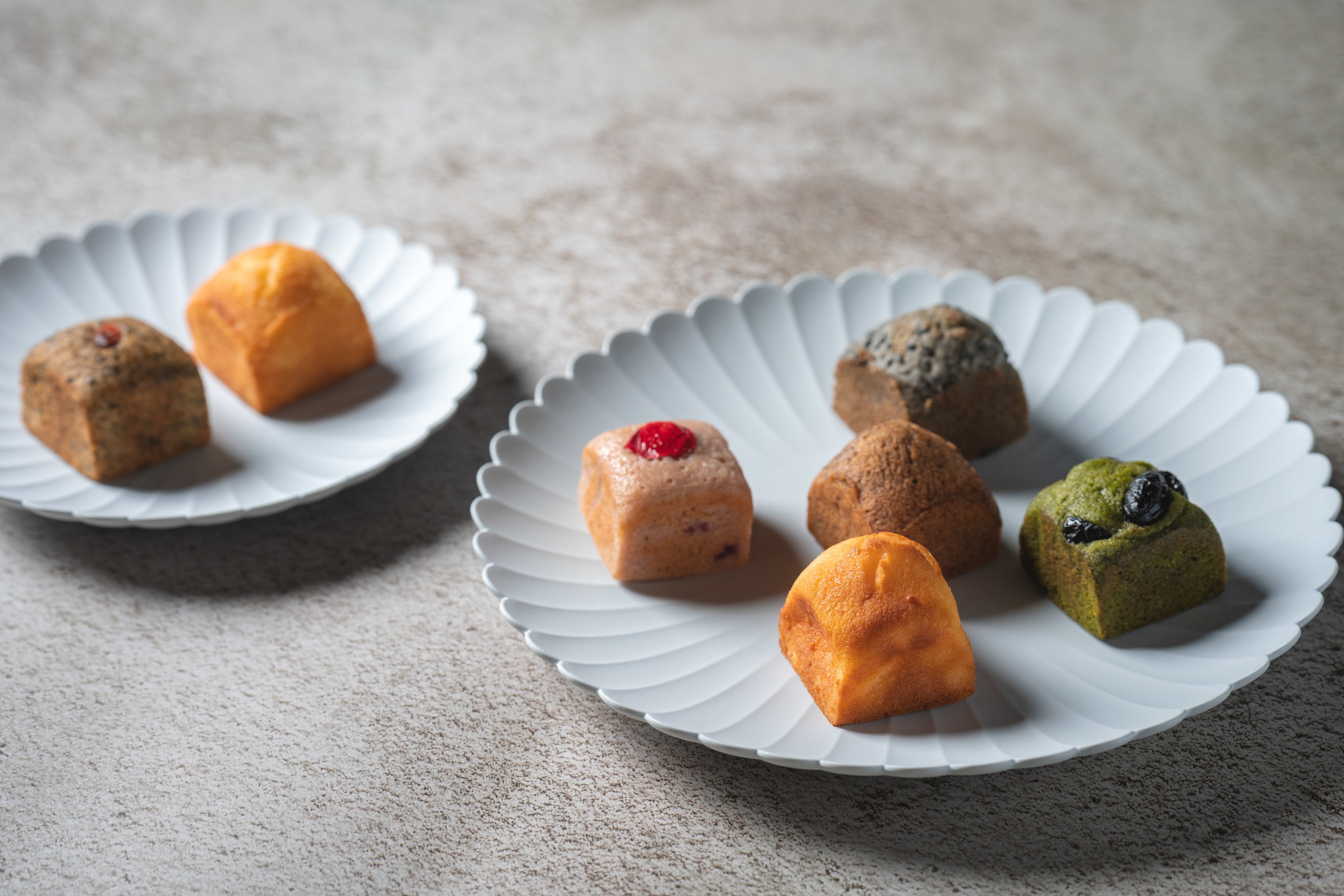 今回は福岡市南区にあるパウンドケーキ専門店【漆菓】にコラボレーションを依頼。ホテルのテーマでもある、「意外性」や「知的好奇心」をくすぐるような限定の2味を新たに考案。【漆菓】の人気定番5味とセットにした7個入りのセットで販売します。【THE BASICS FUKUOKA】限定味のひとつは、台湾の凍頂烏龍茶葉を使用した「凍頂烏龍」。生地に織り込んだ華やかな茶葉の香りが口から鼻に抜ける中にクルミとイチジクを混ぜたこし餡が絡む一品です。もうひとつは、組み合わせが意外性な「フランボワーズと白あん」。漆菓自家製の塩漬けしたフランボワーズと薔薇を合わせた生地に白あんの優しい甘さを合わせました。