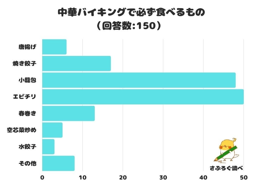 中華バイキングで必ず食べるものをアンケートにて調査したところ、1位は「エビチリ」でした。