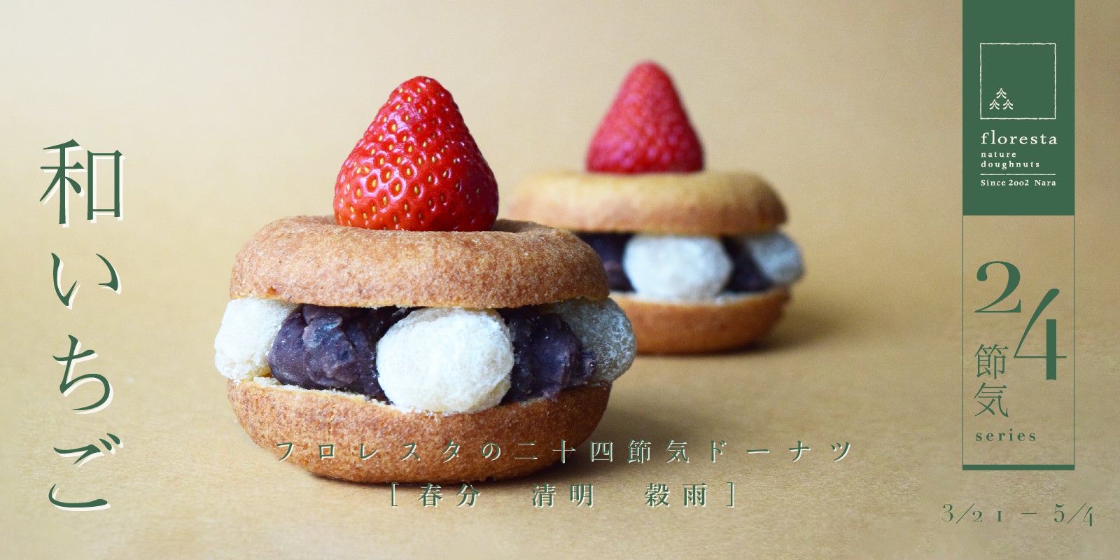 株式会社フロレスタ(本社:大阪市浪速区/代表取締役社長:辻尾吉厚)は、2022年より旬を味わう二十四節気ドーナツをリリースし、第2弾として3月21日(月)の春分から「和いちご」のドーナツを販売開始いたします。