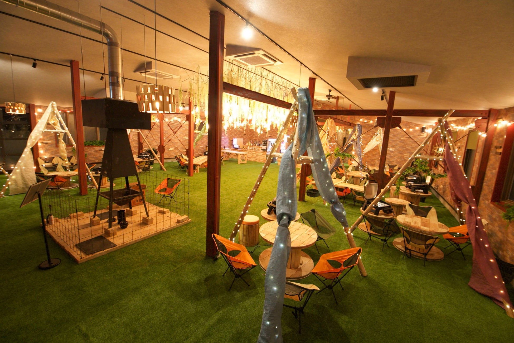 当店は、人工芝を一面に敷くことで開放的でリゾート気分が味わえるお店作りになっております。