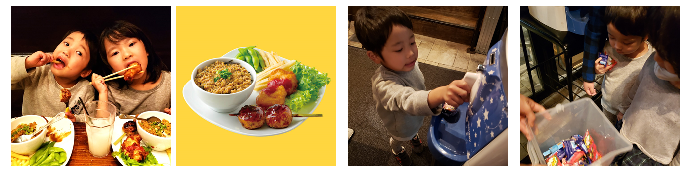 やきとり家すみれではお子様の成長を家族でお祝いするのにピッタリ。小学生以下のお子様は、ソフトドリンク飲み放題の他、ガチャガチャのサービス(もしくは玩具プレゼント)、お子様プレートもご用意しております。