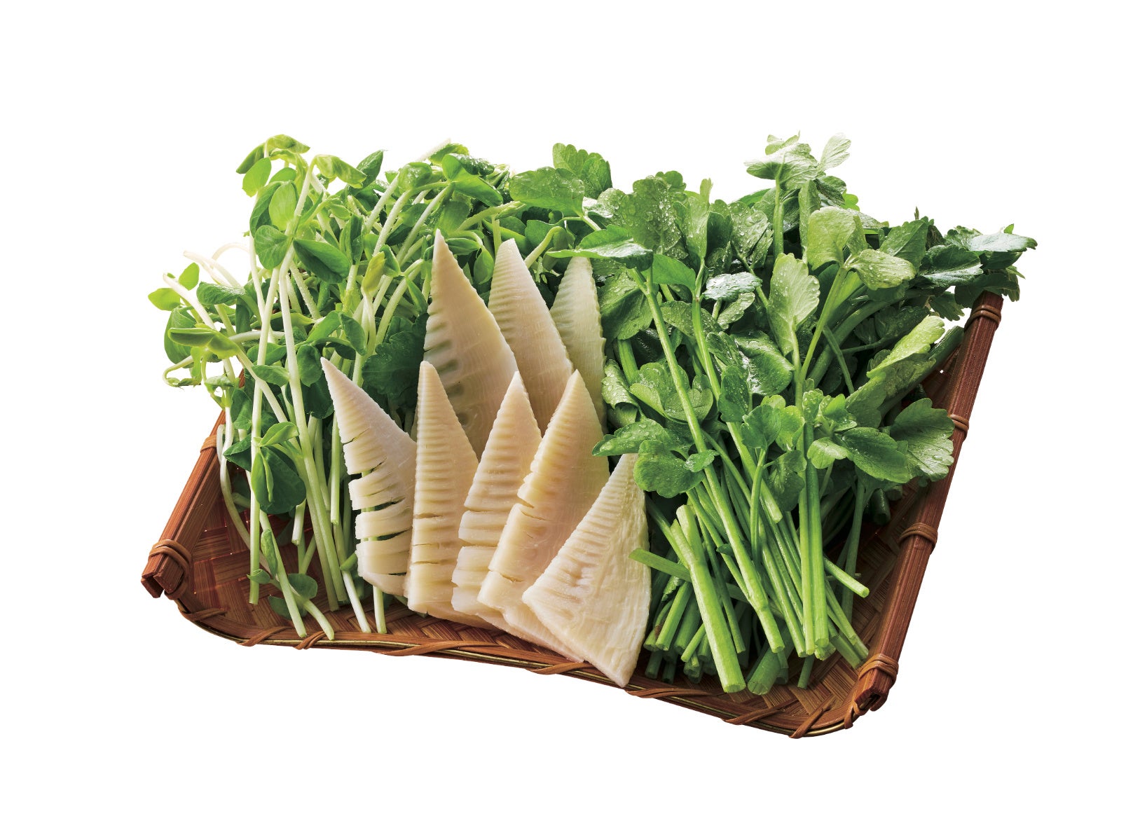 さらに、だしにぴったりな旬野菜も期間限定で登場!春に旬を迎えるせり・竹の子に加えて、豆苗の盛り合わせをご用意しております。