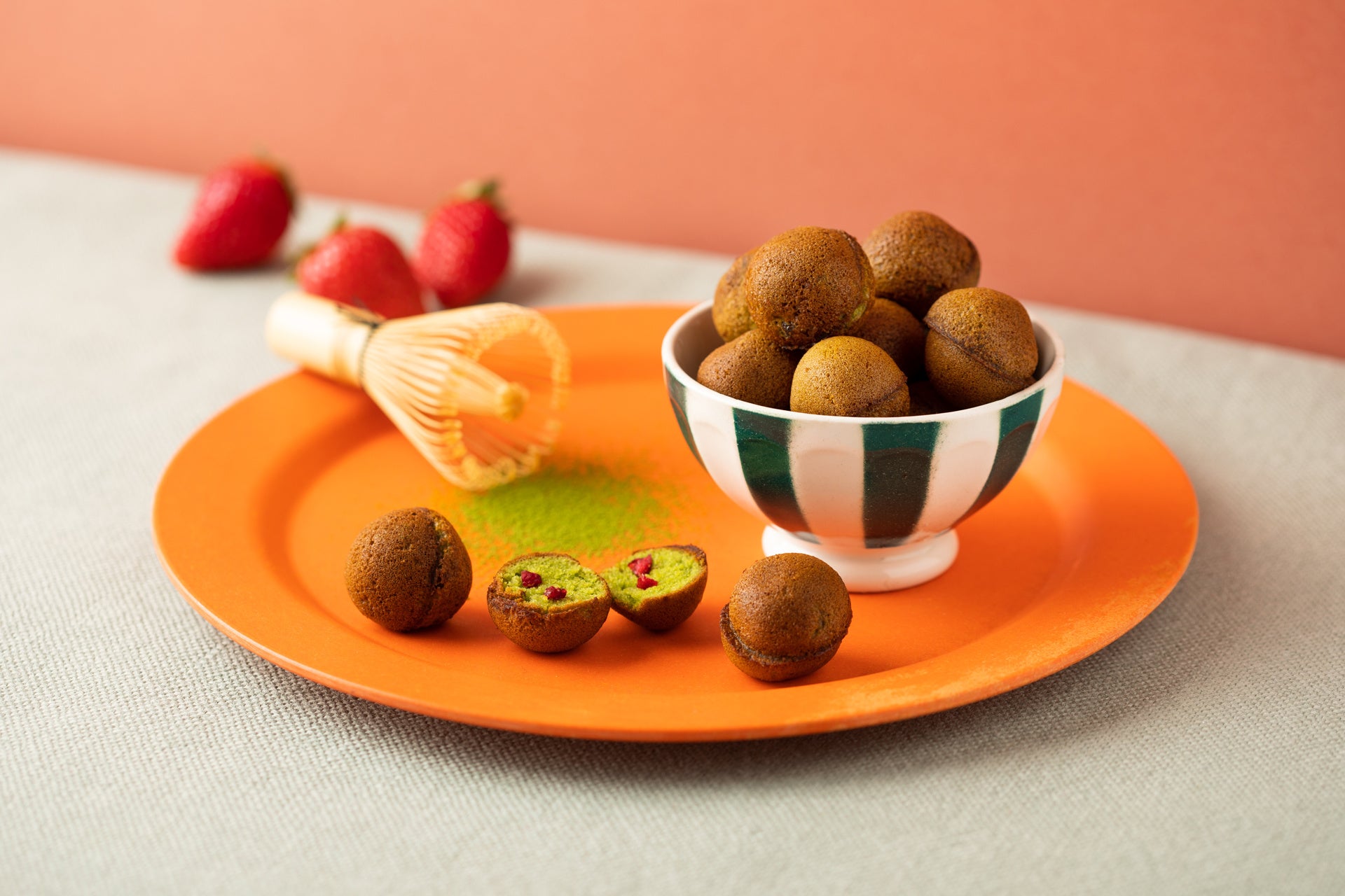 抹茶のほろ苦さといちごの甘酸っぱさがマッチした、春限定のバターカステラも販売中!