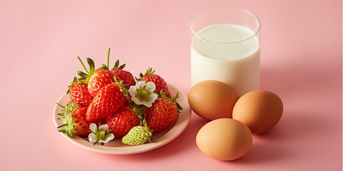 4:北海道産の苺と、北海道の自社牧場でとれた放牧牛乳と平飼い卵
