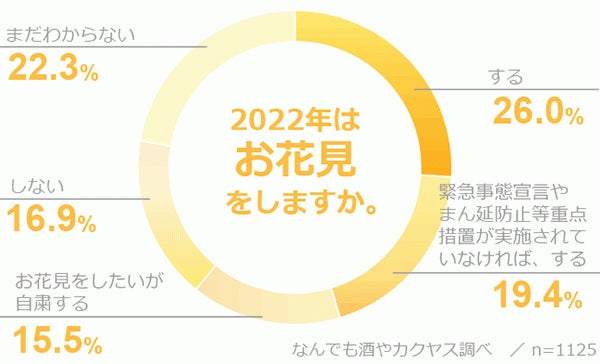 今回、お花見に関するアンケート調査を実施したのは2月下旬。その時点で、東京など31都道府県にまん延防止等重点措置が発出されていました。現在はすべて解除されたものの、新たな変異株も確認されていることから、依然としてコロナ禍であることに変わりはありません。