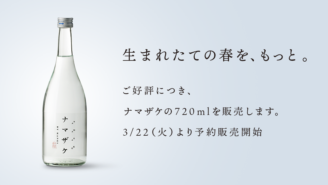 - 予約数完売となった「ハルザケ・ナマザケ」より新たに「ナマザケ」720mlが登場