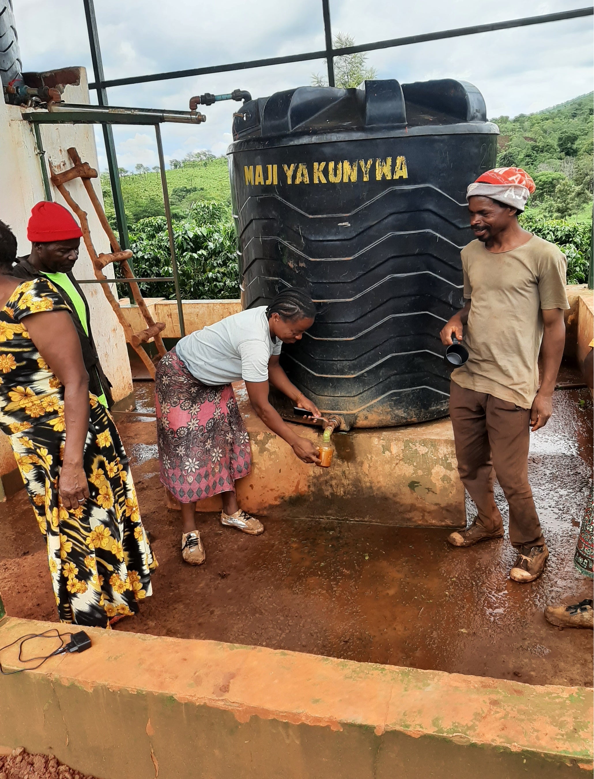 そこで、今回のプロジェクトでは、汲み上げた地下水をウォータータンクやローリーに一時保管し、農園各所に運ぶことで、井戸から遠い人々も含めてコーヒー生産に携わる全ての人が気軽に安全な水にアクセスできる環境を整備しました。