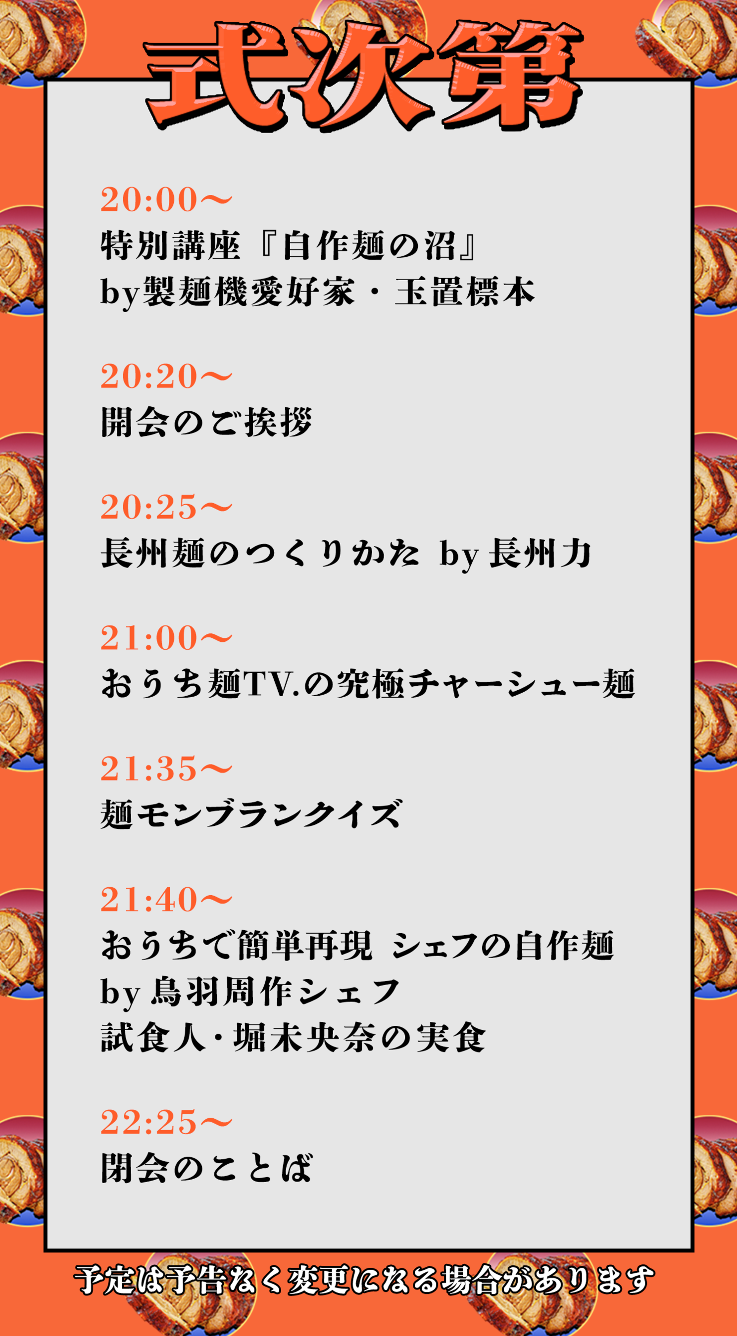 150分生配信で、麺づくりの魅力を語りつくす、麺好きのためにこだわり抜いた企画です。