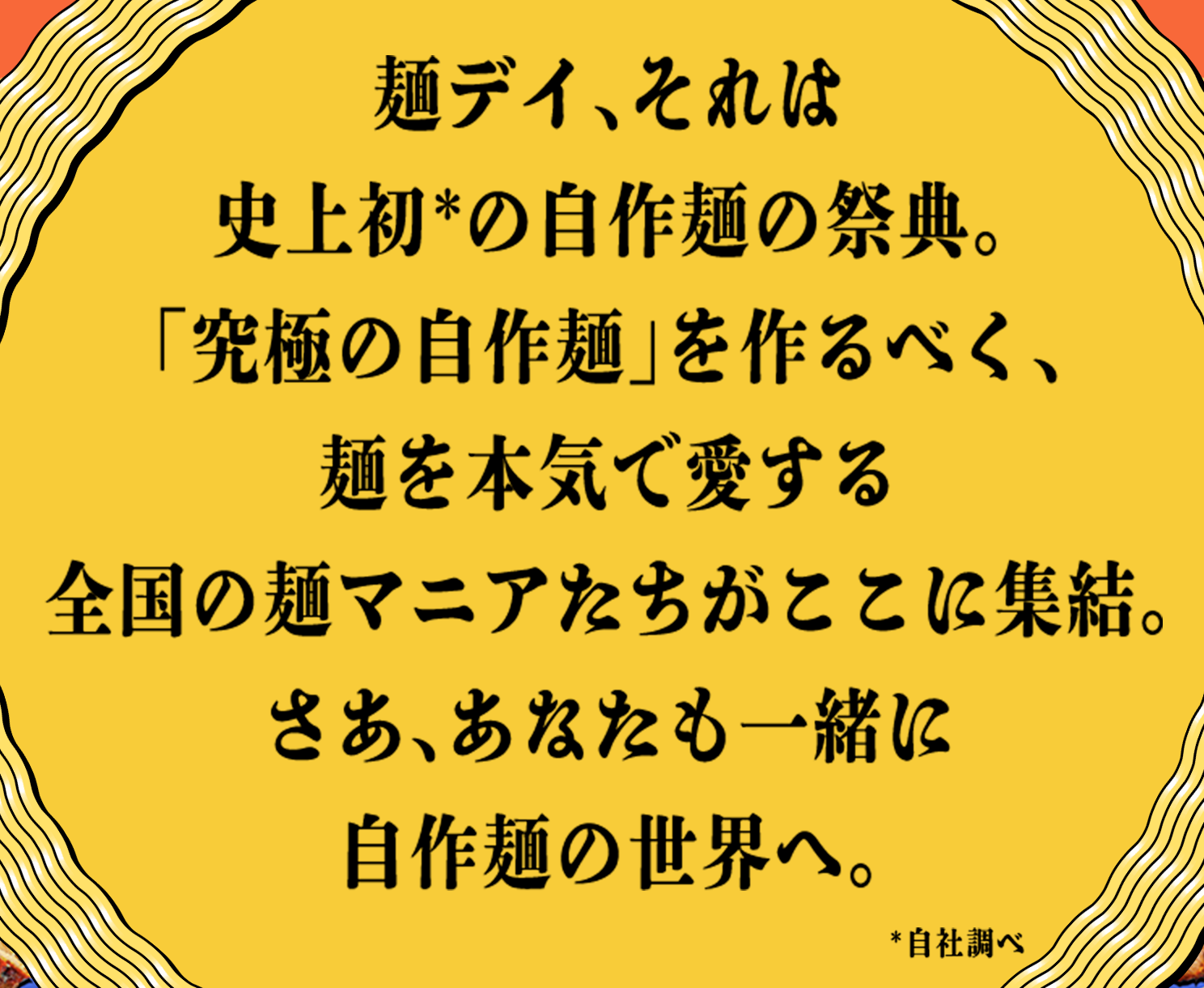 ■「究極の自作麺を自分で作ってみる」がテーマの、“自作麺の祭典”『麺デイ』 開催概要
