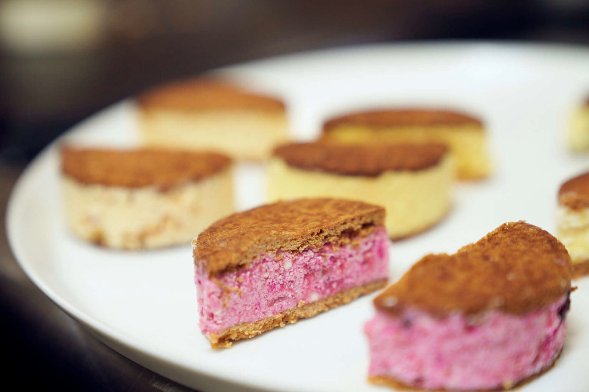 黒糖塩キャラメル:宮古島産の純黒糖と雪塩を合わせました。甘味と塩味のバランスが絶妙で、なめらかなバタークリームとの相性も抜群。