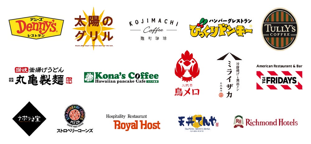 | 株式会社セブン&アイ・フードシステムズ | デニーズ、太陽のグリル、麹町珈琲(麹は旧字体) |